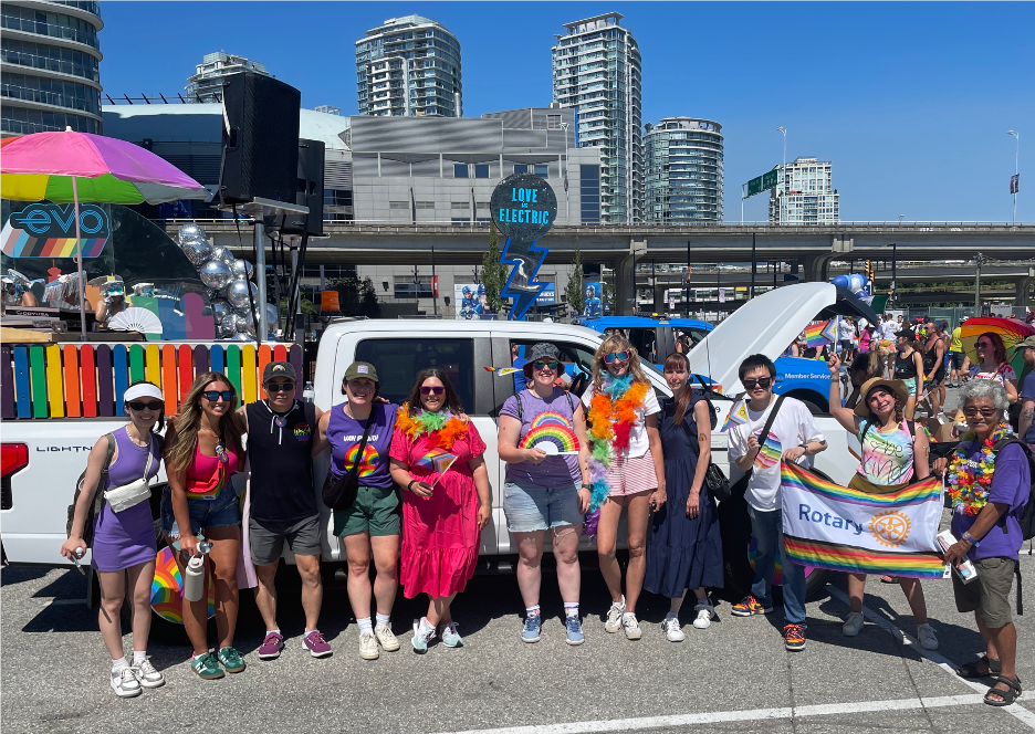 Loud and proud described the vibe as a group of Rotarians, including District Governor Nominee Dean Hsieh, Ron, and some of our youth members hoisted the Rotary Pride Banner at the August 4th Vancouver Pride Parade.